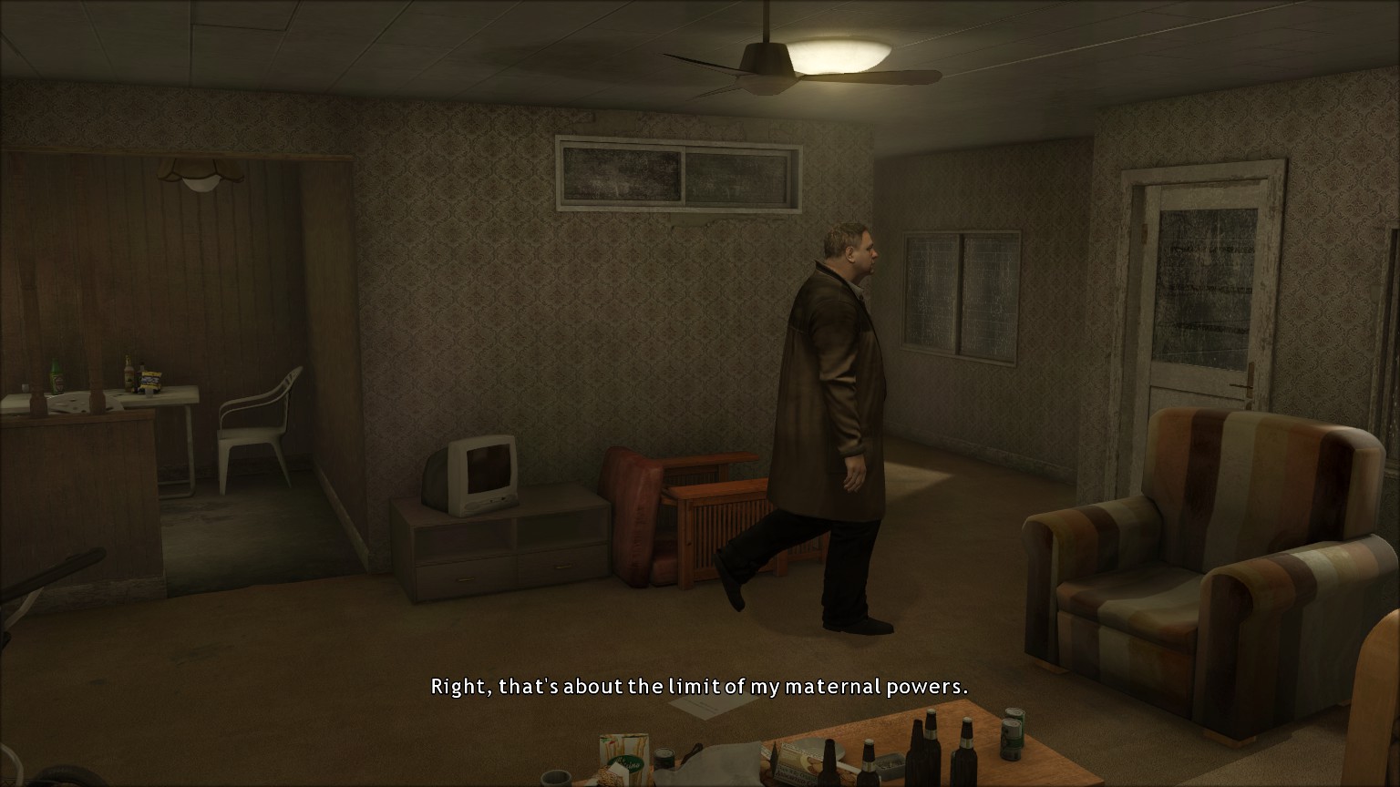 Norman’s partner (heh) Blake can beat up the Shrink here. Once again, achievements for getting him beaten up and for intervening. I have recorded a video of myself giggling at the latter option. Either way, the plot continues the same way.